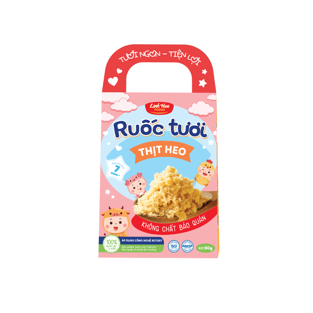 – Ruốc tươi với thành phần 99% là thịt heo & 1% nước mắm dành cho bé ăn dặm nên có thể sử dụng cho bé từ 7 tháng tuổi